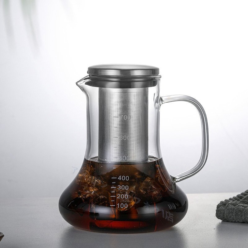 - 新品☆冷茶も楽しめる ガラスポット コーヒー 冷蔵庫 水出し 抽出 フィルター メモリ 軽量 使いやすい シンプル ドリンク 夏 紅茶 アイス