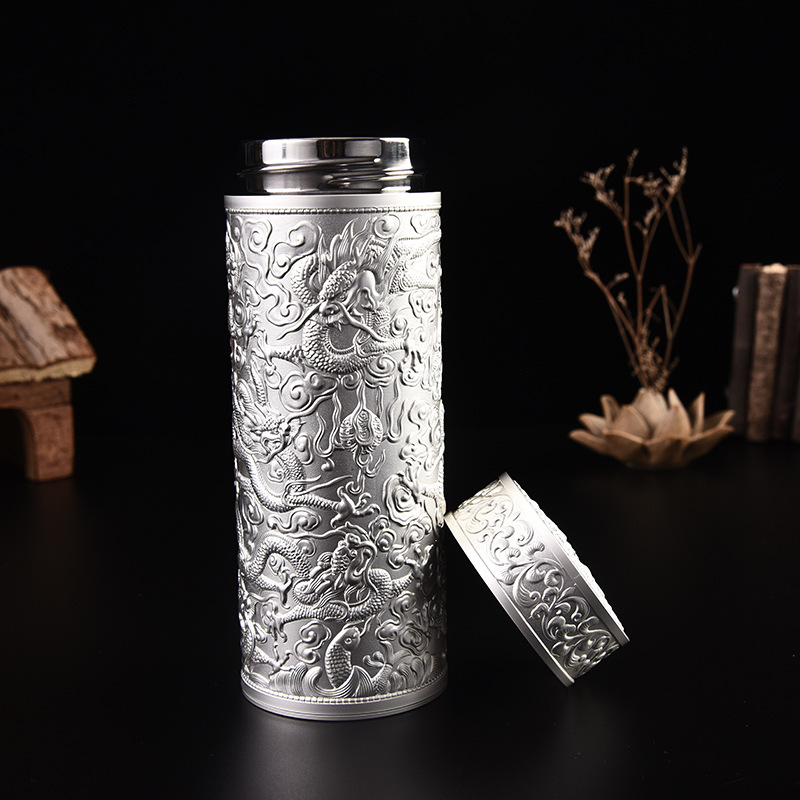 - 大人気新品九龍杯 純銀 銀製 健康茶飲み 水筒 保温 ボトル 茶文化 シルバー 工芸品 アンティーク コレクション