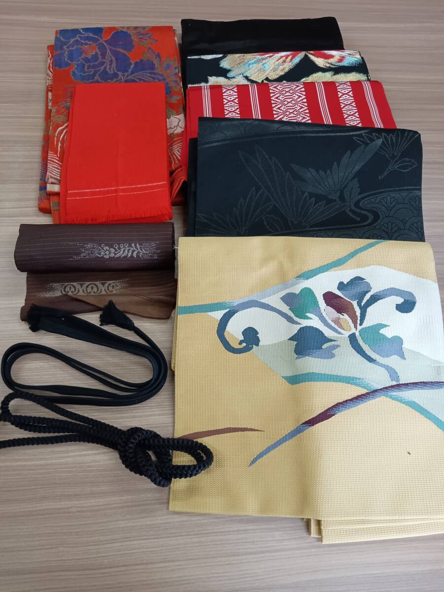 - №2 帯&帯締め 10点 まとめ売り 和装 和服 和装コート レトロ柄 和柄 モダン リメイク ハンドメイド 材料 素材古着 中古品 はぎれ