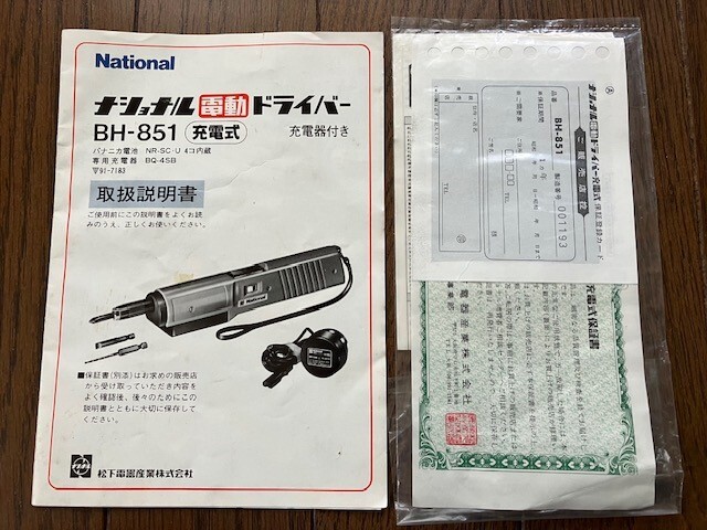 - 【取扱説明書、保証書のみ】ナショナル 電動 ドライバー BH-851 充電式 取扱説明書 保証書 昭和 当時物 保管品 送料無料 底値