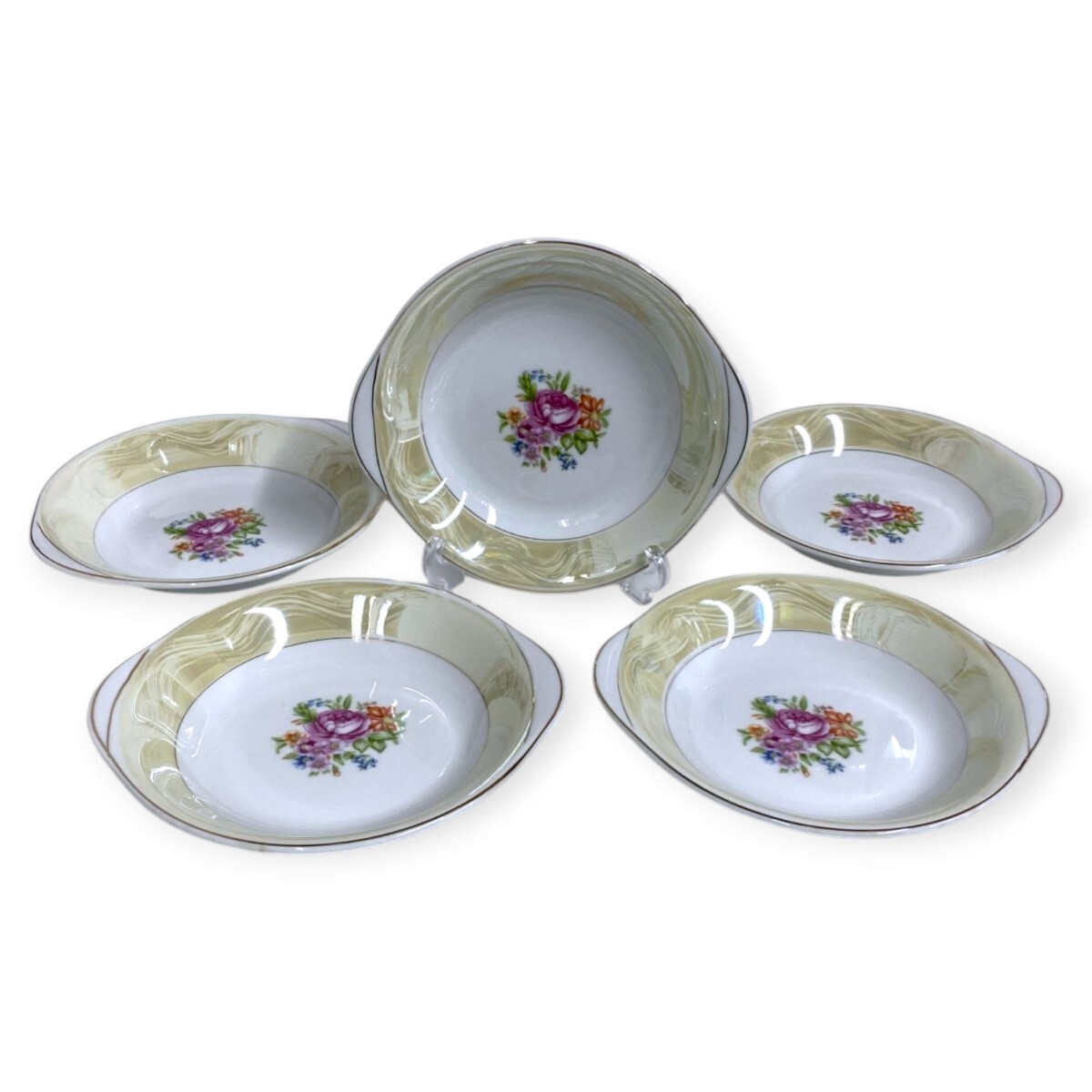 - 【新品未使用品】 KONOMI コノミ エレガント カレー皿 5枚セット 金彩 花柄 洋食器 プレート 24ま317
