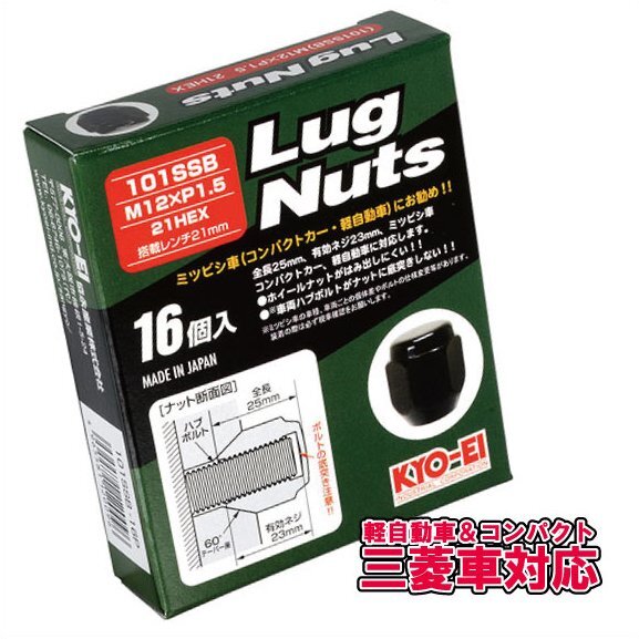 > 三菱 軽自動車 4穴用 ナットセット 21HEX M12XP1.5 60°テーパー座 ブラック 全長25mm(有効ねじ23mm) KYOEI/0601SSB