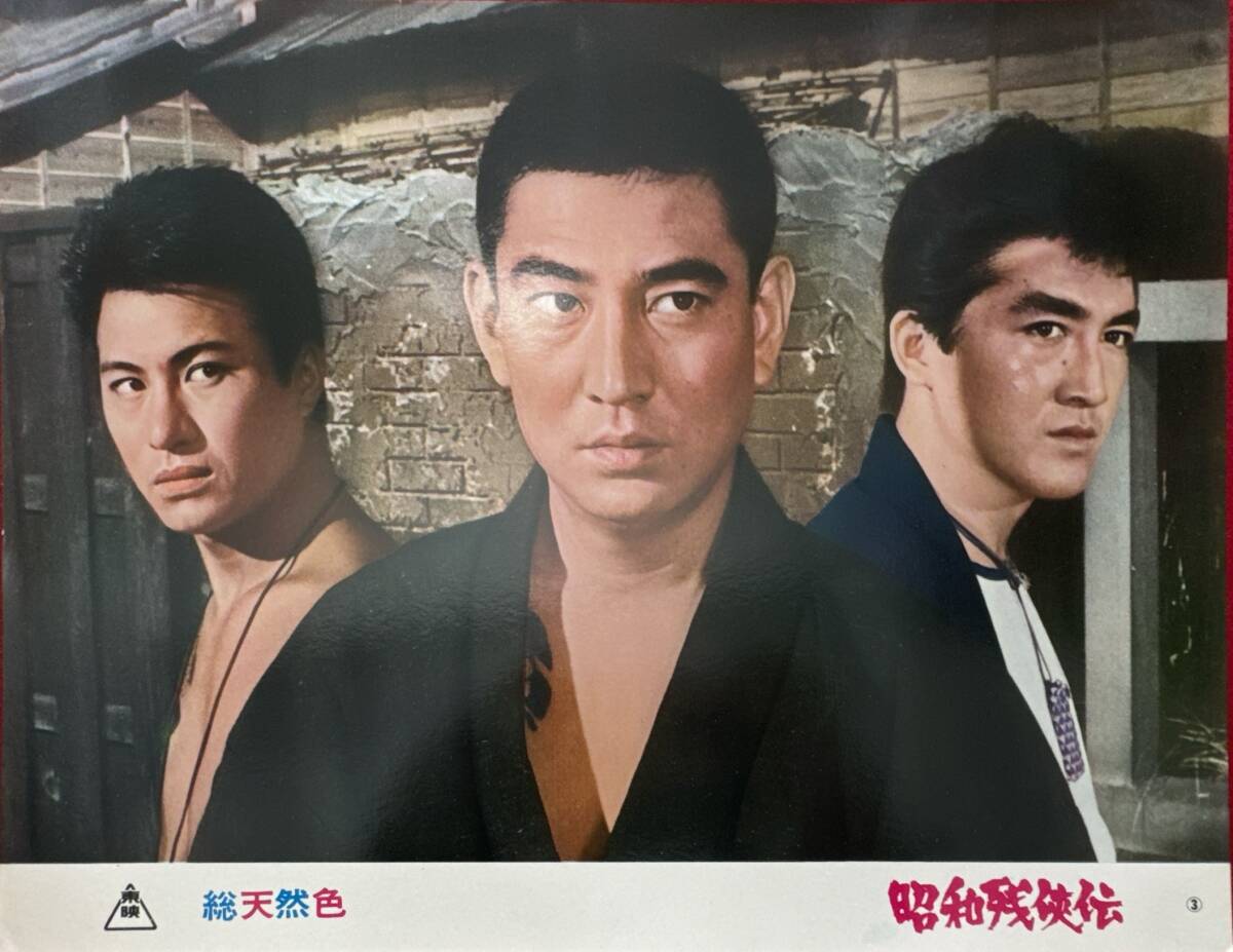 > ly02096『昭和残侠伝』ロビーカード 佐伯清 俊藤浩滋 降旗康男 高倉健 三田佳子 池部良 松方弘樹 梅宮辰夫 水上竜子 梓英子