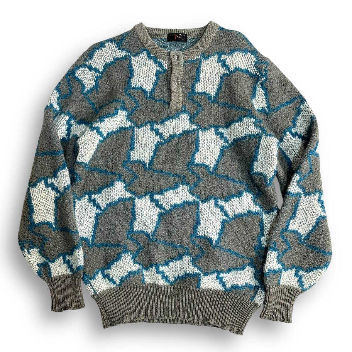> 良好【mountain TOP】VINTAGE 90s 総柄 ヘンリーネック プルオーバーレトロニット 古着 個性的 ビンテージ 古着ミックス