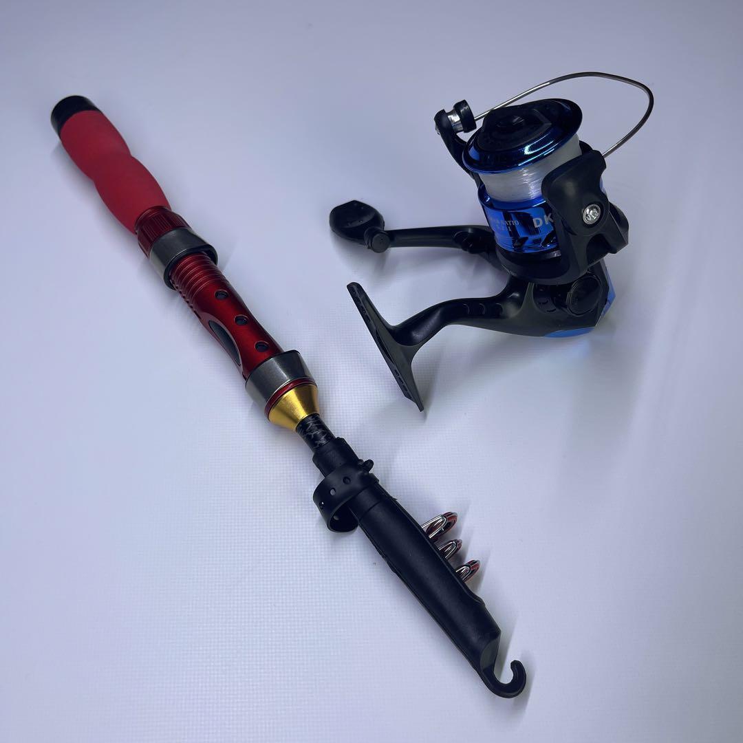 - 1m竿 リールセット 糸付き コンパクトロッド 釣り竿 短竿 ブラクリ 穴釣り 探り釣り 伸縮 振り出竿 青 ブルー レッド 赤