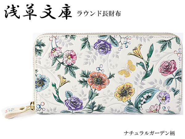 - 財布 長財布 ラウンド 財布 浅草文庫 小銭入れあり ナチュラルガーデン 日本製 友禅染 本革 江戸小紋 レディース 女性
