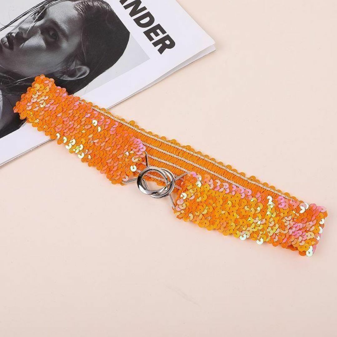 - 【オレンジ色 】スパンコール太 ゴムベルトレディース