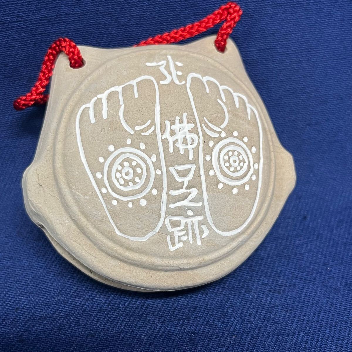 希少 伊勢朝熊岳 金剛証寺 仏足跡 土鈴 箱付 金剛證寺 佛足跡 陶器 根付 昭和レトロ (10316F