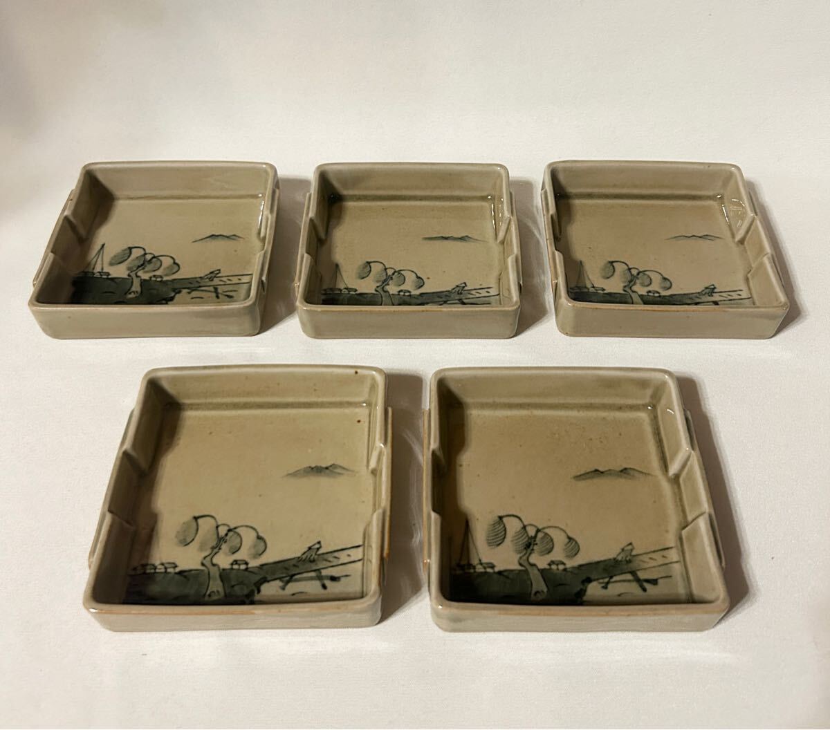- 嘉? 嘉〇? 小鉢 5客 料理 食器 小皿 角皿 陶芸 在銘