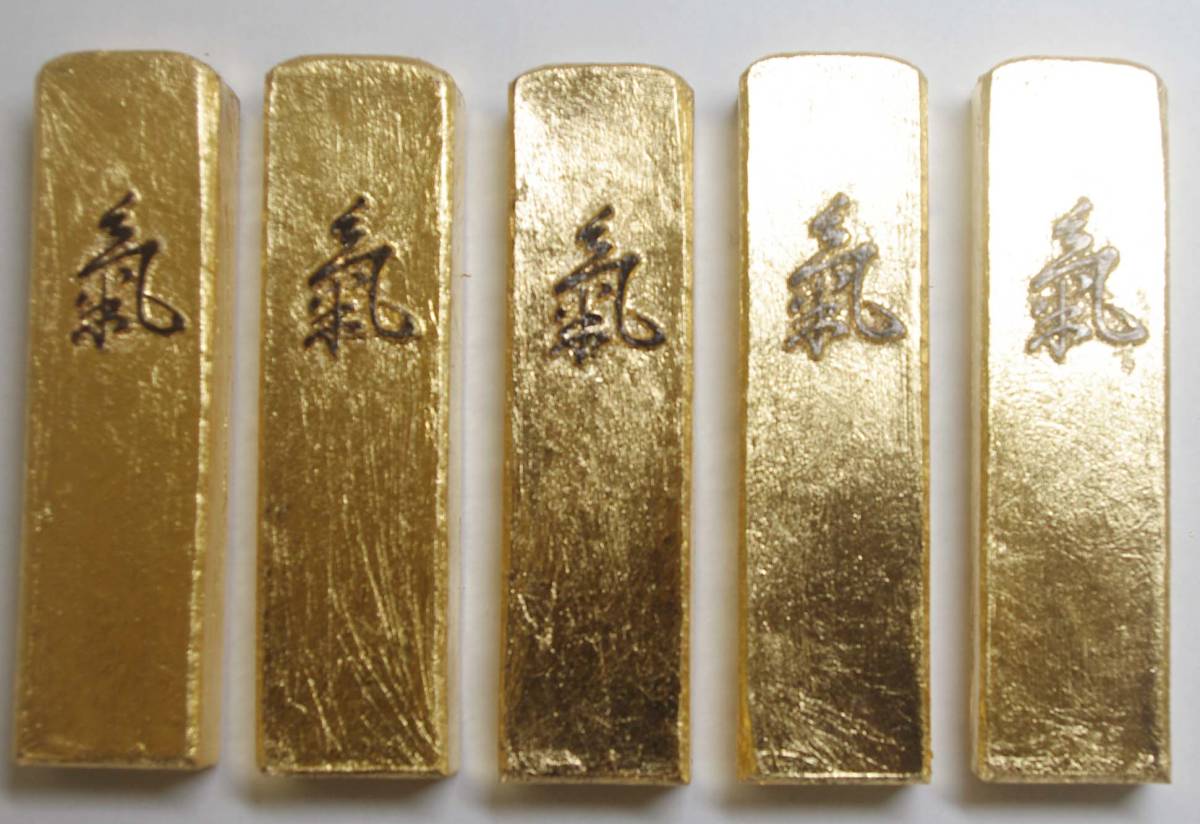 - 墨 固型墨 菜種油煙墨 2丁型「金巻 氣」5丁セット 書道用墨 美術品 固形墨 枯墨 工芸品