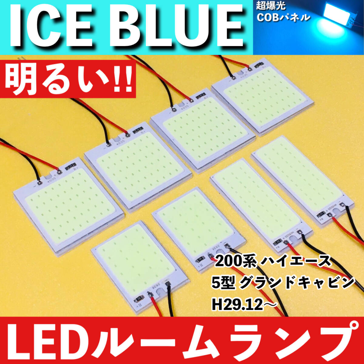 > 200系 ハイエース 5型 グランドキャビン [H29.12~] アイスブルー LED ルームランプ 超爆光 COBパネル 全面発光 水色 室内灯 パーツ ライト