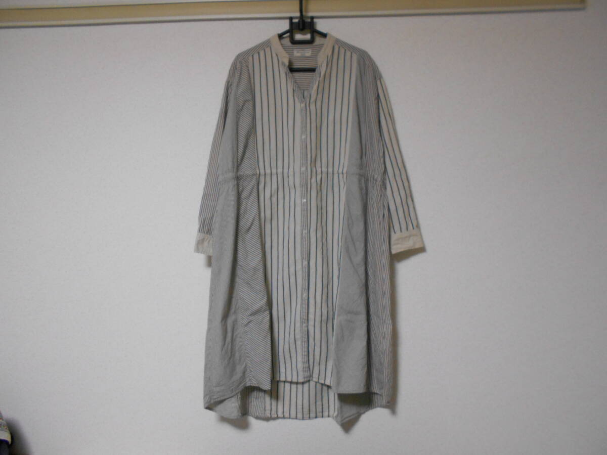 - Humpty Dumpty ALICEハンプティーダンプティー☆淡グレーベージュ×濃グレー切替ストライプ柄☆長袖シャツチュニック☆ワンピース☆F☆美品