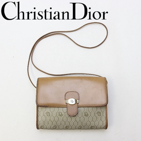 - ヴィンテージ◆Christian Dior クリスチャン ディオール PVC×レザー ハニカム柄 斜め掛け ショルダー バッグ