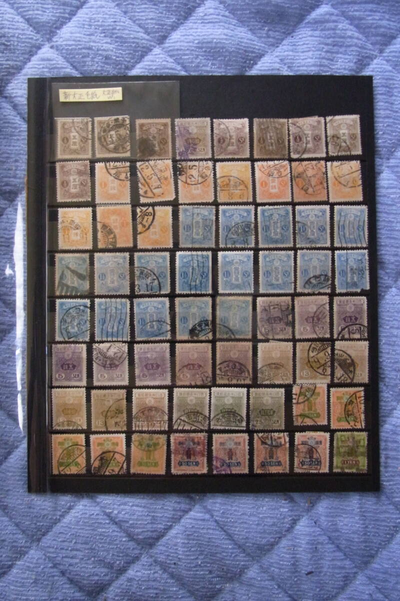 > コレクター出品: 新大正毛紙・平面版25銭まで(大正すかしW1)54枚 輪転版(18.5x22.5)30銭以上10枚 合計64枚 使用済み