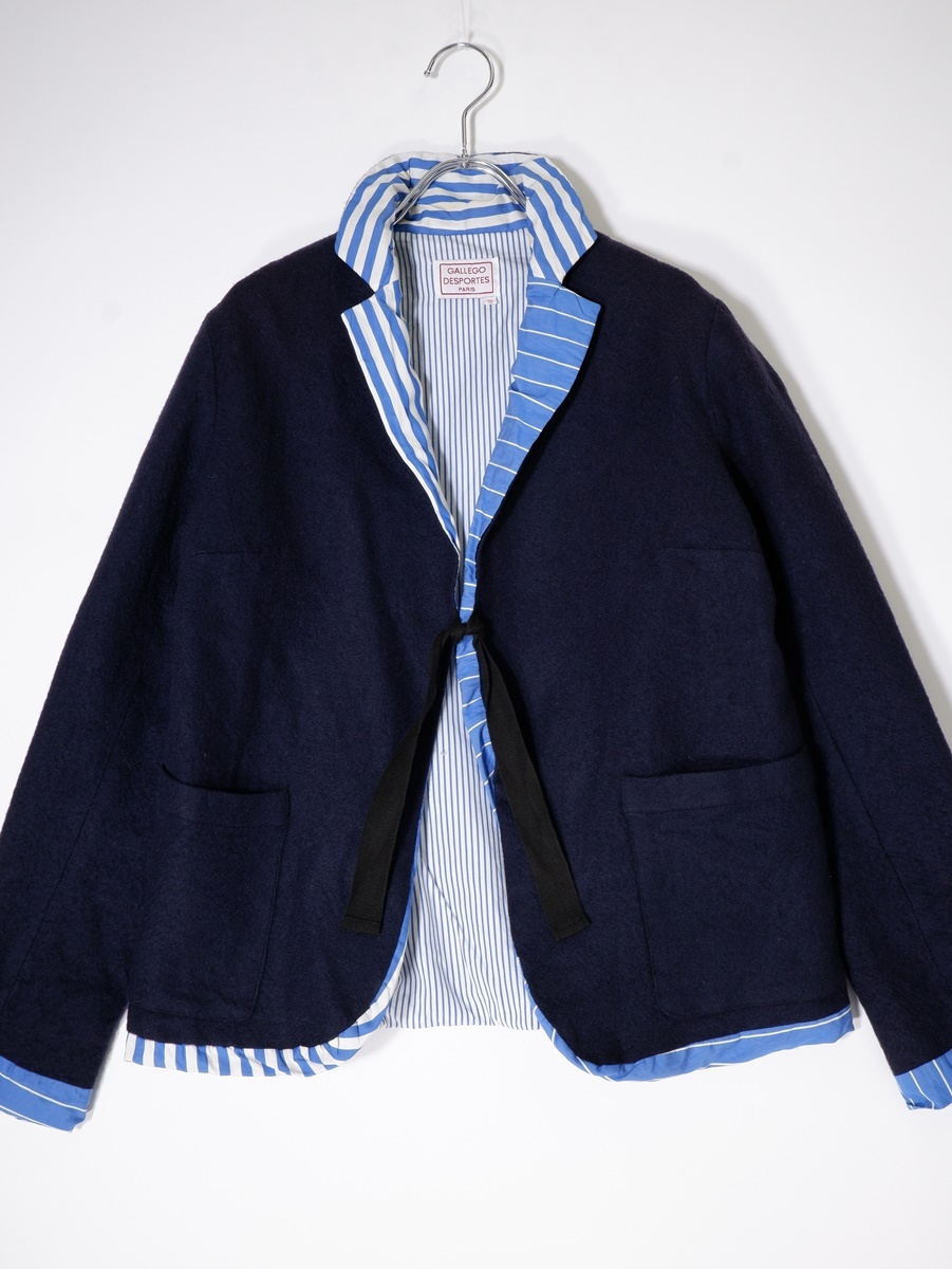 > GALLEGO DESPORTES/ギャレゴデスポート フランス製 裏地ストライプレイヤード 縮絨ウールジャケット [LJKA76263]
