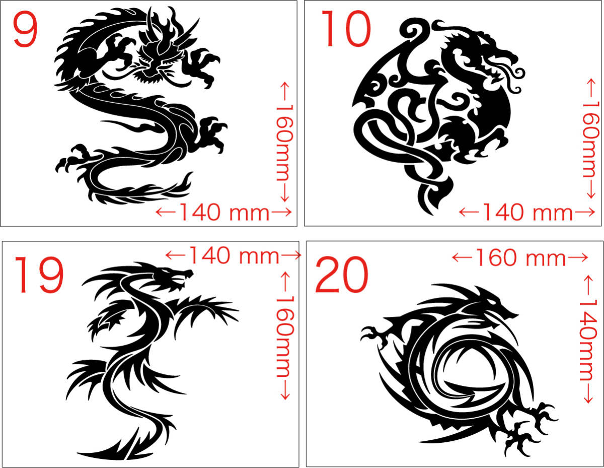 > ドラゴン 龍 トライバル1(右向き)・9-24 (8種中1点選択) カッティングステッカー 耐水・耐候 車やバイクのワンポイントやキズ隠しに