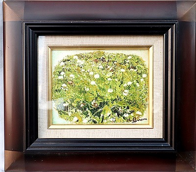 - 油彩画 クローバー 白い三つ葉 油絵 F0 高級額