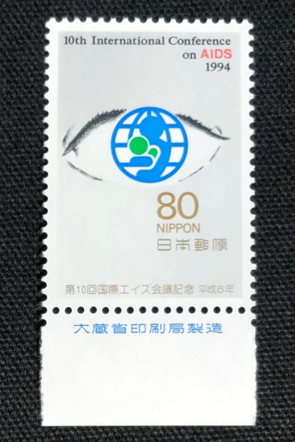 - [24110505]【第10回国際エイズ会議記念】単片 銘版付「瞳と会議のマーク」80円 1994年発行 美品