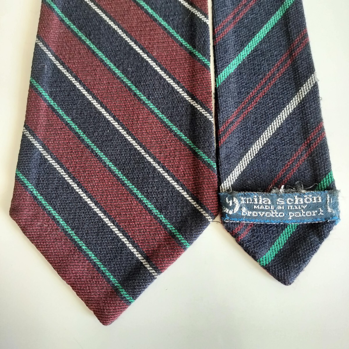 - ミラショーン(Mila Schoen)紺ボルドーストライプ両面ネクタイ リバーシブルネクタイ ツインタイ