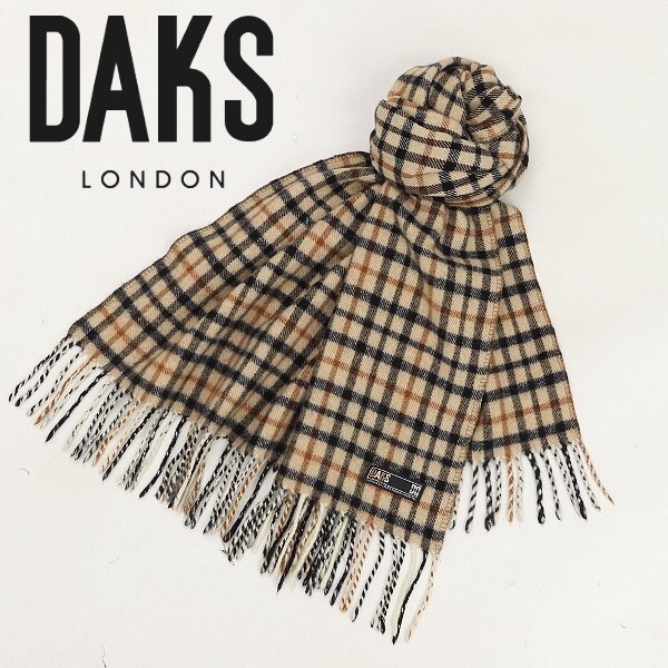 - ◆DAKS ダックス チェック柄 フリンジ ウール マフラー