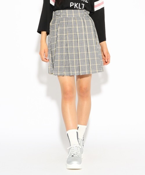 > 新品 PINK-latte ニコラ掲載起毛プリーツ スカートガンクラブチェック(233) 02(M165cm) 定価3190円