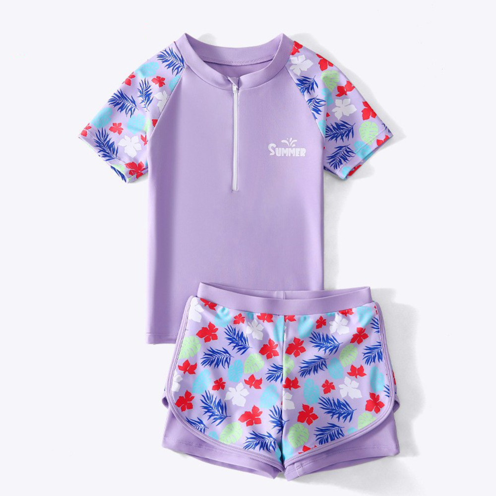 - ☆ ショートスリーブB×パープル ☆ 100-110cm(Lサイズ) ☆ キッズ 水着 女の子 yswim5070 キッズ 水着 女の子 ワンピース ワンピ