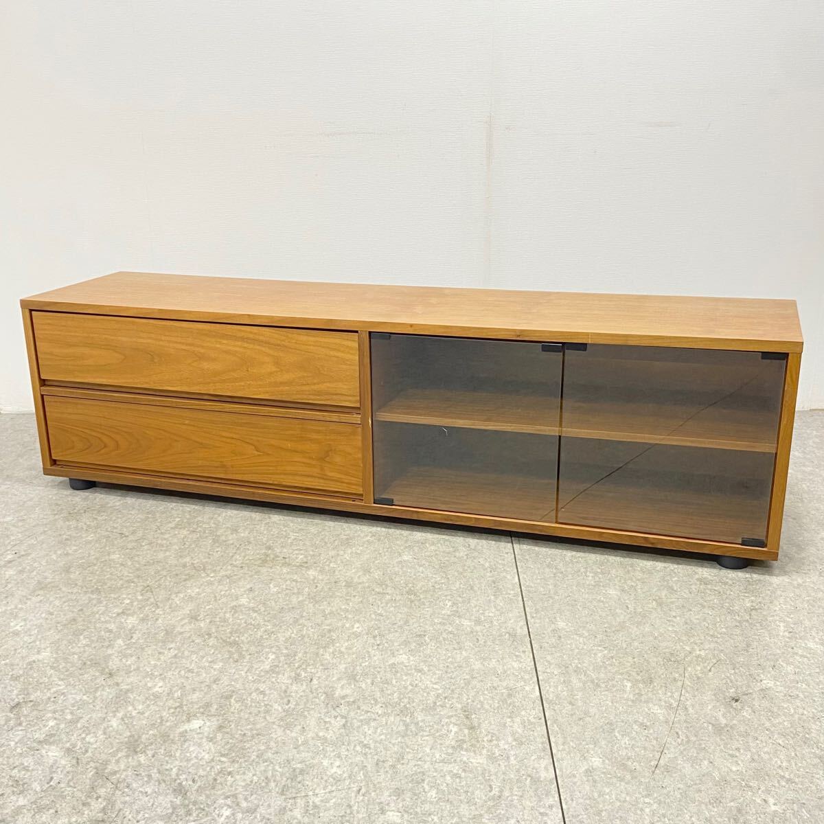> □ MUJI 無印良品 ウォールナット材 テレビ台 テレビボード ローボード AVボード TVボード 幅約162㎝ TV台 ガラス扉 引き出し □24110806