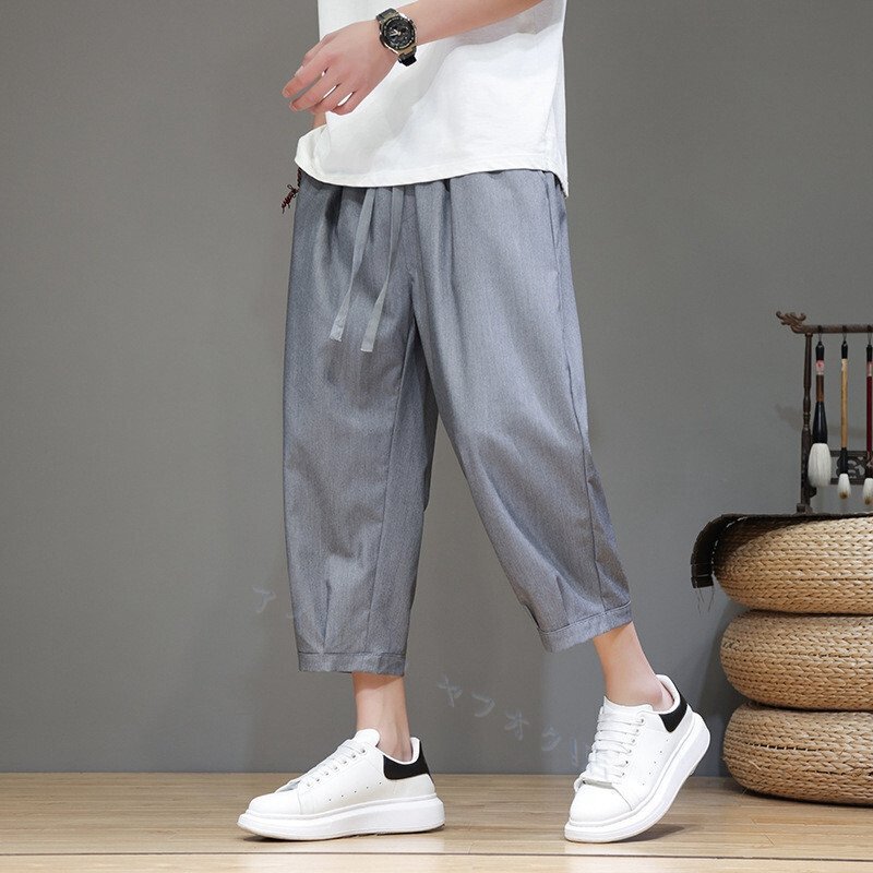 - ☆新品 クロップドパンツ 夏涼しい メンズ カジュアルパンツ ショートパンツ ハーレムパンツ【-2-AK07】グレー 5XL選択