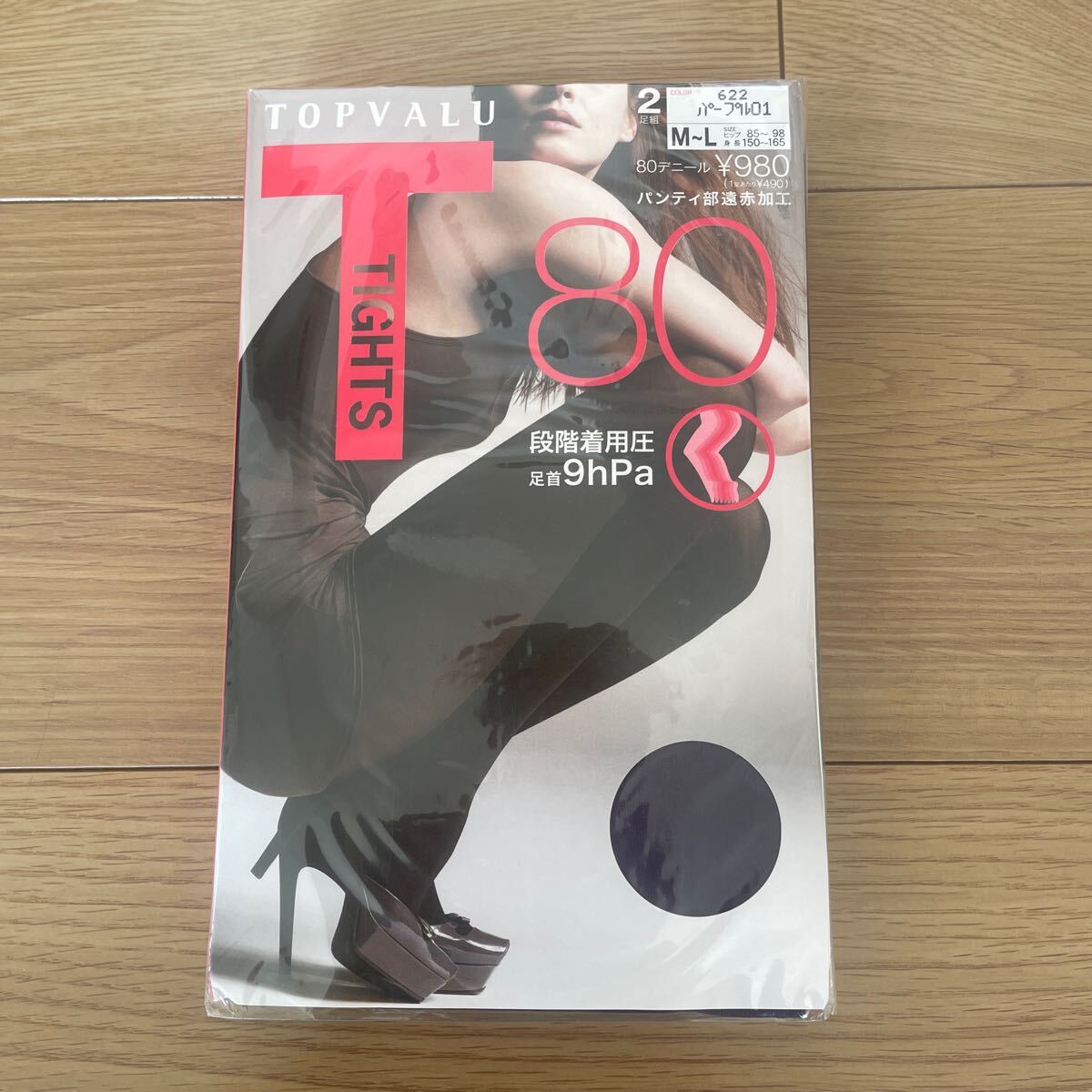 - 新品 タイツ 80デニール 2足組 M〜L 紫 定価980円 日本製
