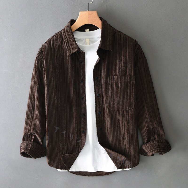 > ☆新品 シャツジャケット 長袖シャツ シャツ 春秋冬 メンズ カジュアル トップス ヴィンテージ レトロ 珈琲色 2XL