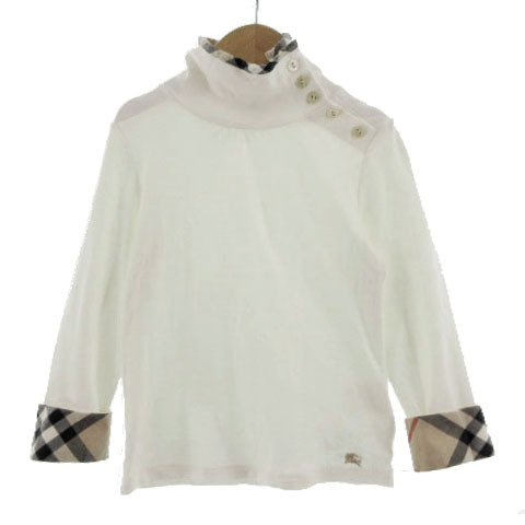 - バーバリー ロンドン BURBERRY LONDON カットソー ハイネック ショルダーボタン ロゴ刺繍 コットン ノバチェック オフ白 110A