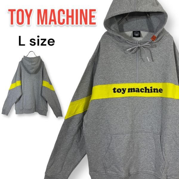 - 【レア】トイマシーン パーカー TOY MACHINE Lサイズ トイマシン グレー ロゴ イエローテープ ハーフジップ