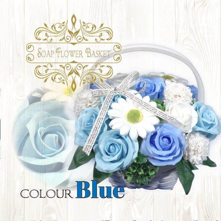 - ソープフラワー 石鹸素材でできた枯れないお花 花かご 石鹸の香り 25cm フラワーギフト ブルー 花籠 造花 卒園 卒業 進学 お祝い