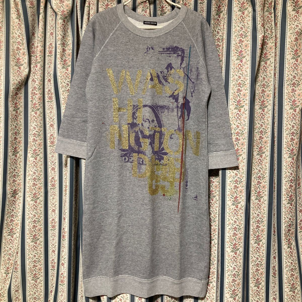 - オゾンロックス ラメロゴ&ワシントンプリント スウェットワンピース 裏毛 ロング丈 トレーナー ワンピ オーガニックコットン 七分袖