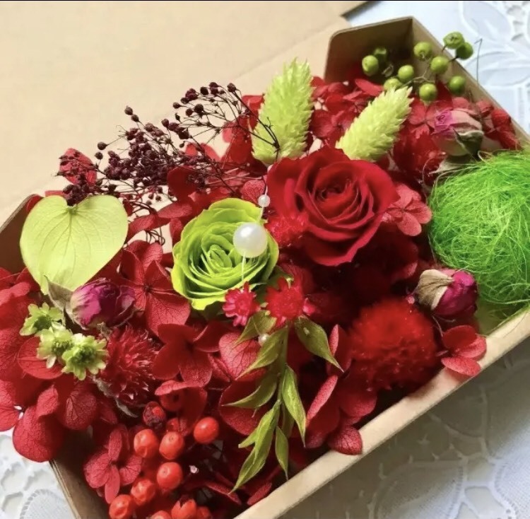 - クイーンレッド&グリーンローズ*花材詰め合わせ