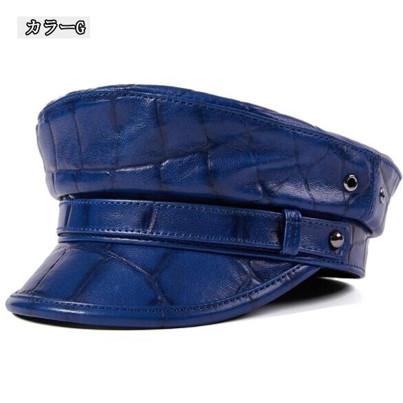 - 本革 マリンキャップ メンズ リアルレザー レディース セーラー帽子 羊皮ハット 通勤 秋冬 ブルー柄/ L-ZXL DJ332