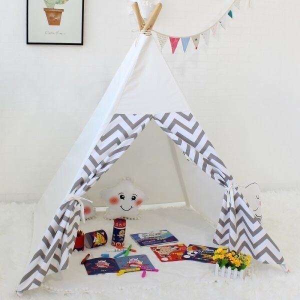 - 子供の テント 小屋 プレイテント 100% コットン キャンバス グレー ストライプ 子供 マット 屋内 屋外 玩具 DJ1929