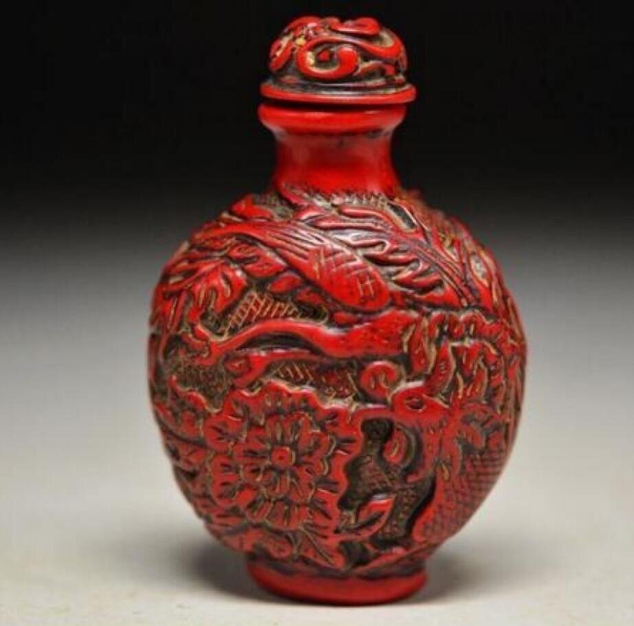 - アンティーク 赤い 珊瑚 彫刻龍 鳳凰 スナッフボトル ZCL772