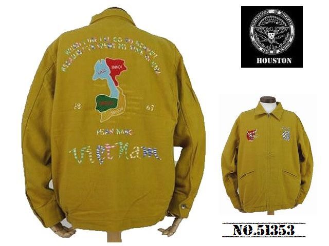 > 【送料無料 24%OFF】HOUSTON ヒューストン コットン×麻 ベトジャン VIETNAM JUMPER 「MAP」 NO.51353 MUSTARD _Lサイズ