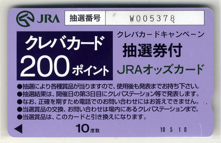 - ★JRA 非売品 オッズカード クレバカード 200ポイント 抽選券付 未使用 美品 競馬 即決