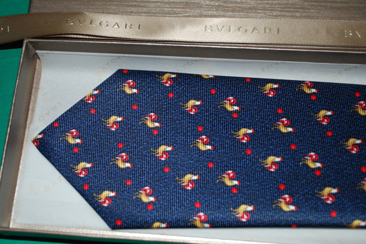 > ■新品未使用■ブルガリシルク100%ネクタイ 保存袋・リボン・ネクタイ専用箱・持ち手付きネクタイ専用袋付き■