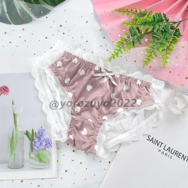- 117-245-9 可愛い ガーリー系 ハート柄 光沢 おぱんつ【ホワイト×ブラウン,Lサイズ】レディース 下着 女の子 学生 JK パンツ ショーツ .1