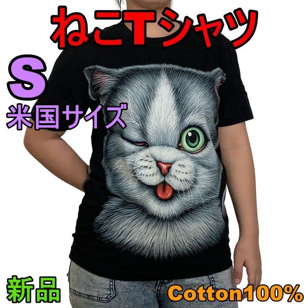 > 猫 半袖 Tシャツ (D01 S) 光る おもしろ ねこ バック プリント キャット アニマル シャツ
