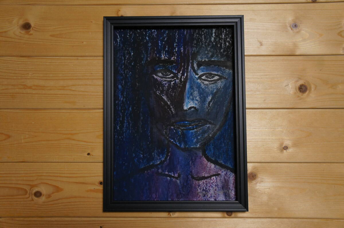 - 【今夜の気持ち】手描き 肉筆 クレヨン画 人物画 絵画 A4サイズ 751,Crayon painting, oil pastel painting, original art