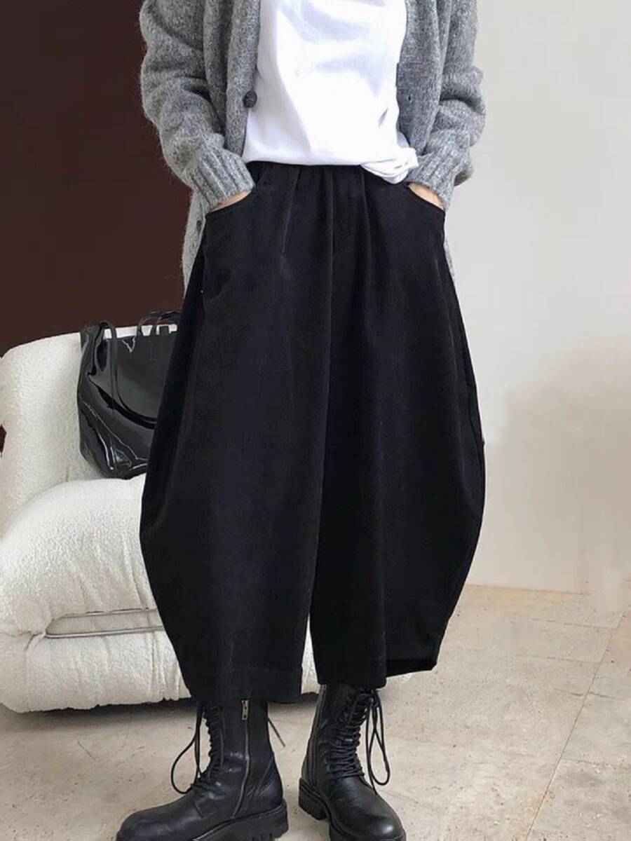 - 同梱1万円送料無料★ぶかぶかパンツポワーンと広がるバルーンパンツ秋冬★新品★大きいサイズ★ウエストゴムのゆったり ブラック