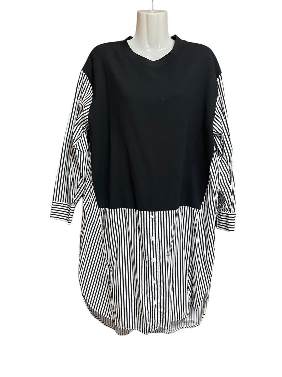 - ZARA ワンピース ボーダー Lサイズ ブラック ザラ シャツ シャツワンピース トップス