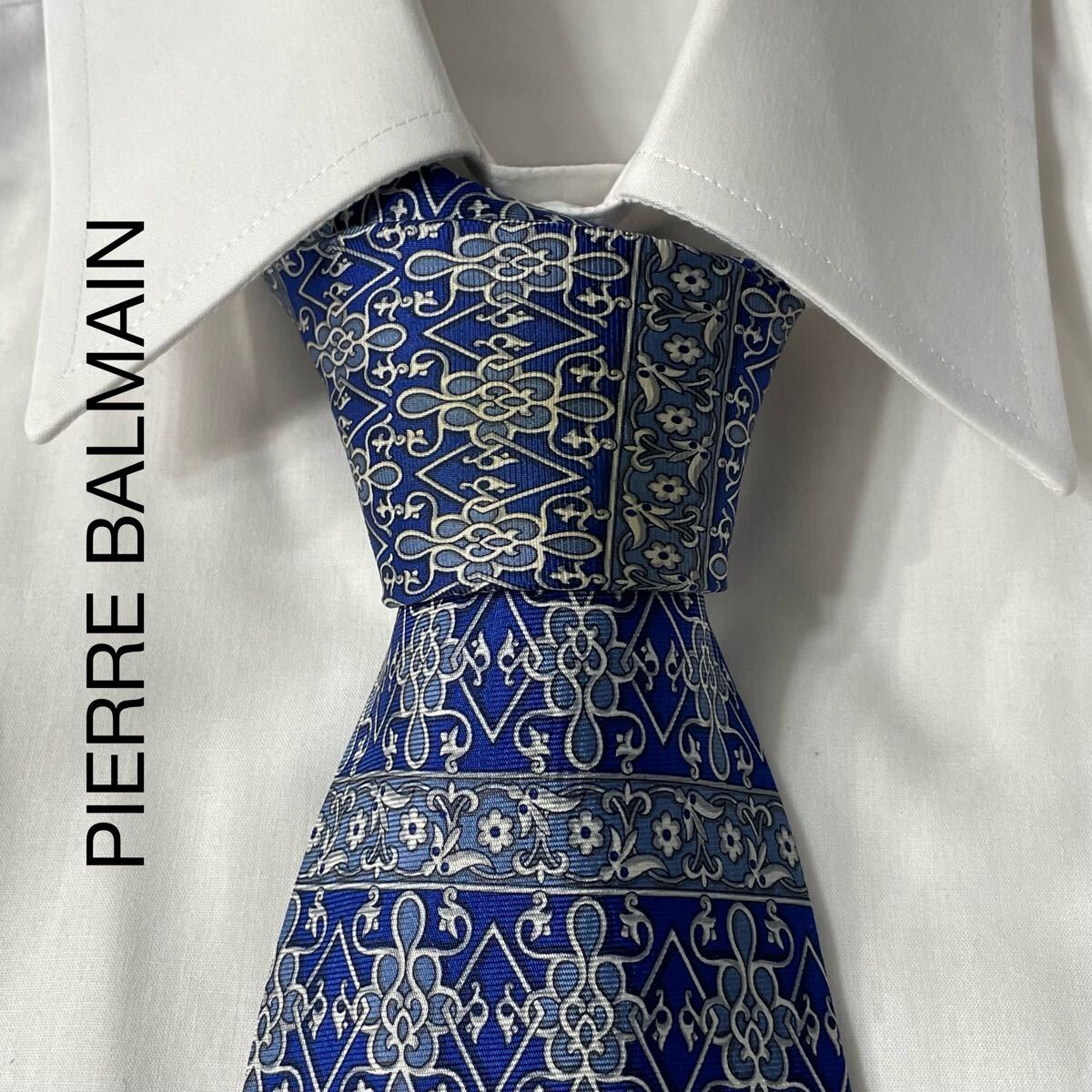 - PIERRE BALMAIN ピエールバルマン パターン柄 デザイン シルク ネクタイ イタリア製 ブルー TG360