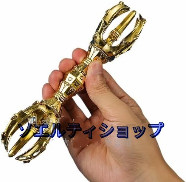 - 五鈷杵 金剛杵 鍮製 手道具 仏具 法器 大型 前具 魔除け 厄除け 浄化 守護長さ 16.5cm