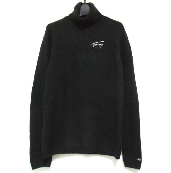 - 新品★TOMMY JEANS トミージーンズ★リブ タートルネックニット★M ブラック トミーフィルフィガー