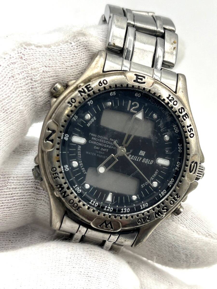 - 【電池切れ】BAILLY BOLD ベイリーボールド クォーツ 腕時計 黒文字盤 アナデジ デジアナ 蓄光 メンズ 部品取り BB-3002【匿名配送】